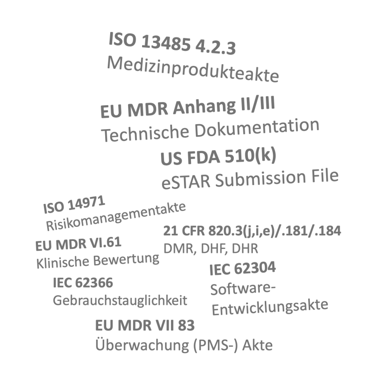 Konformität mit den maßgeblichen globalen Regulierungen und deren Normen und Richtlinien, wie EU MDR, US FD&C, ISO13485, IEC62304, IEC62366, ISO 14971 und alle viele weitere mehr...